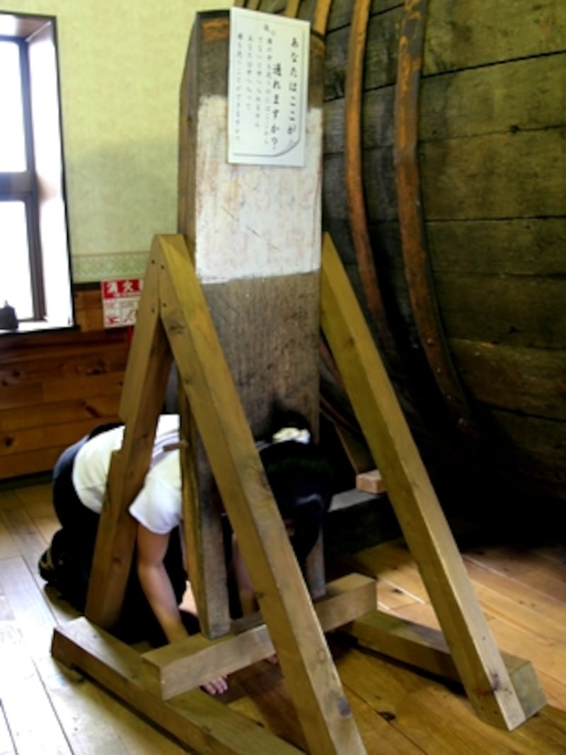2階の展示物で、とくに面白かったのがワイン樽の「出入口」。ワイン樽も時折、掃除するそうですが、その出入口の狭さには誰もが驚かされます。細めの女性なら入れるかな?というぐらいの極小スペースで、通り抜け用の展示物も設置されています。われこそは!と思う方は、ぜひ通り抜けに挑戦してみてください。メタボな男性はあまりオススメしません。