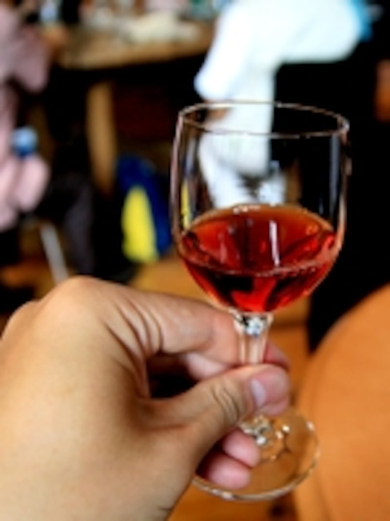 | スワーリングするガイドです。なかなか初心者にはキレイにワインを回すのが、む、むつかしい……。 |