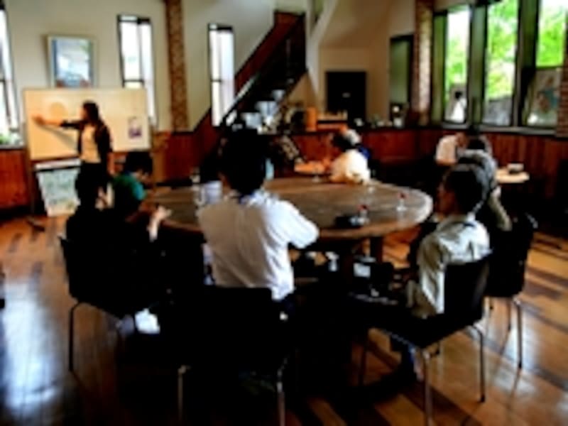| 金銅さんによるワイン講習会。ワインの嗜み方、健康への効用からワインの薀蓄話まで。非常に興味深く面白い講座でした。 |