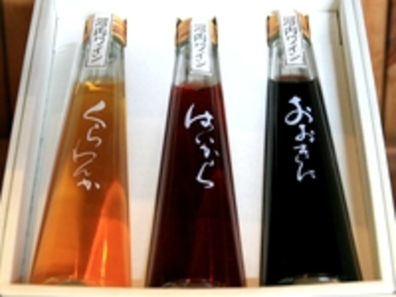 | 「おおきに(赤ワイン)」「はいから(山桃ワイン)」「くらわんか(白ワイン)」という大阪弁が面白い「大阪ものがたり」。大阪みやげとして大人気の商品とか。 |