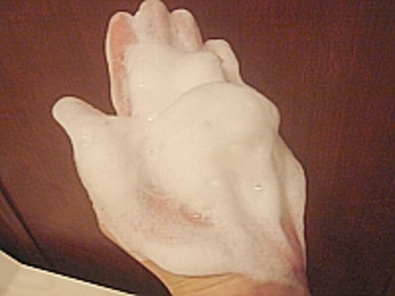 泡が立ったら、顔に優しく置いていき、全体的に泡が広がったら、小鳥の頭をなでるくらいの優しい指使いで汚れを落としていきます。強くこすると毛穴が一緒に動いてしまい汚れが十分に落ちません。