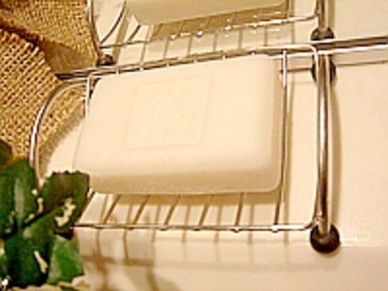 | ソープディッシュの他には石けん用のネット(巾着状になったもの)に入れて吊り下げて置くのもオススメ。 |