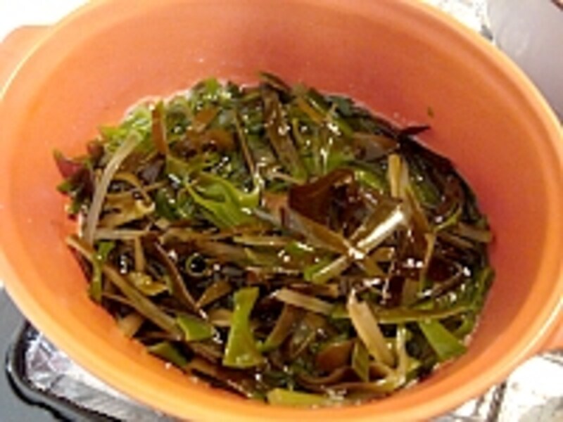 | めかぶの佃煮を作っているところ。エコ料理もお手のものです! |