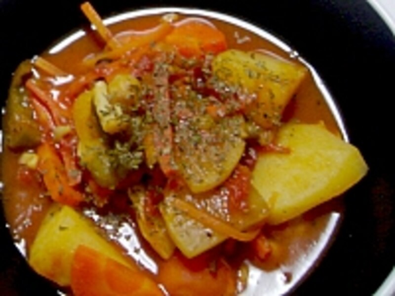 食材の分量も調味料の量もアバウト、切り方もアバウトで、水も入れずに出来る『トマト煮込み』をご紹介します。
