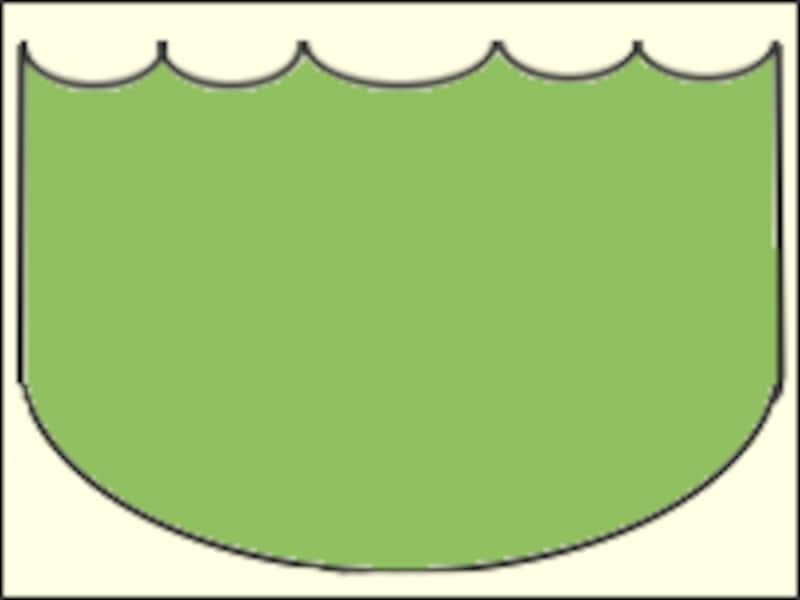 上(画像では左側)のナミナミしている部分は、5つの谷があって、一番真ん中の谷の中心線が、型紙の「わ」の部分に来なければなりません。大体等間隔で谷を作ってください。