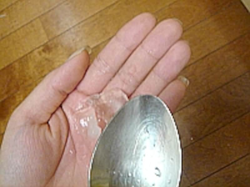 | スプーンの底は丸いので一点だけの力が氷に対して伝わるので、ピックで割ったような威力があります。 |