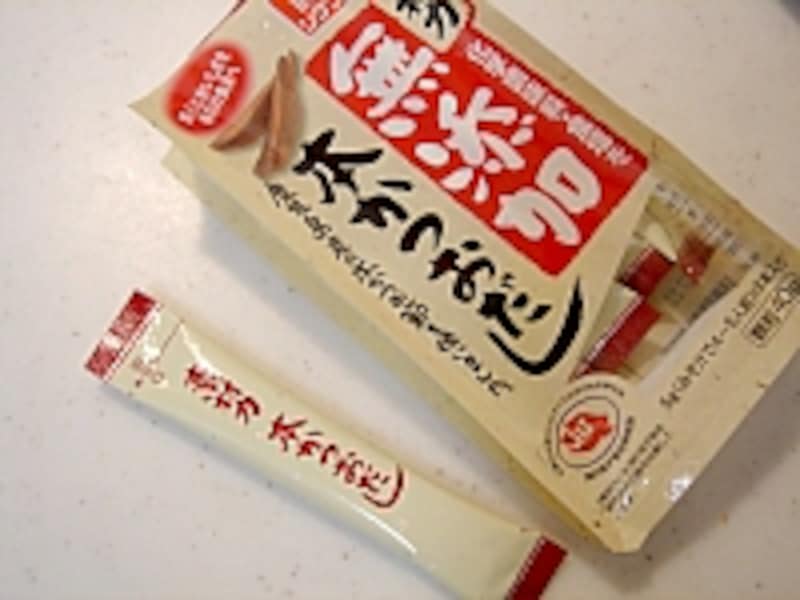 昆布だしやいりこだし、帆立とこんぶの合わせだしもあり、値段も8本で200円くらいと安価。こちらも細粒でスティックに入っていて、一回分で使いきれるのが魅力。食塩も無添加で、塩分摂り過ぎが気になる方にもオススメです。