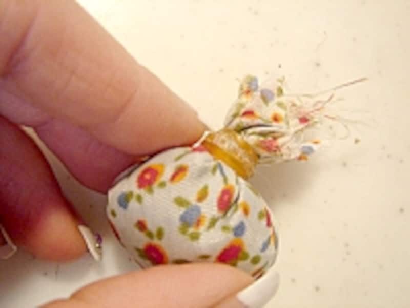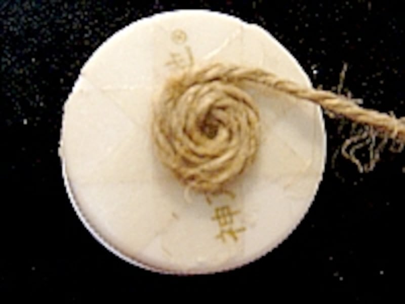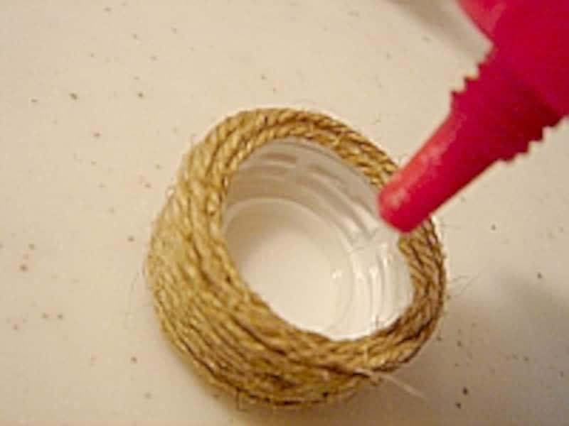 ここで、底の中心の巻き始め部分も、ボンドでとめておくとほつれません。