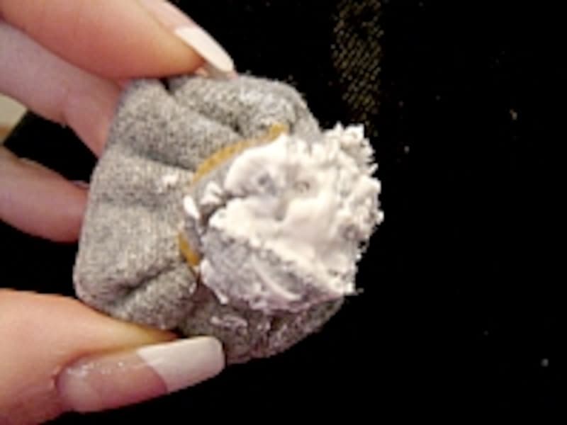 一回口を絞ってみて、丸く団子状にしたものが直径3~4センチになっていればOK。足りないようならコーヒーかすを足します。