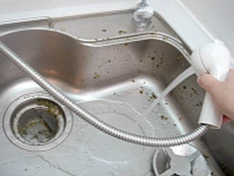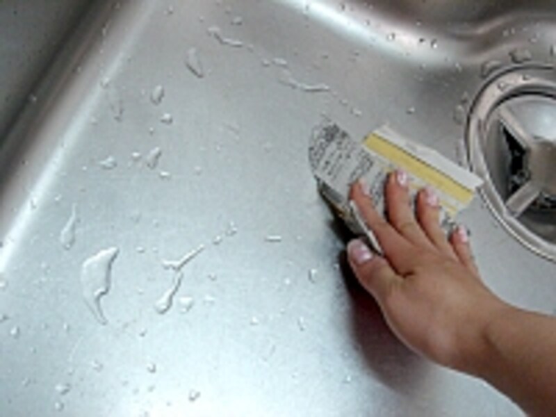 | たんぱく質や、脂の汚れでシンクはすぐ曇ります。 |