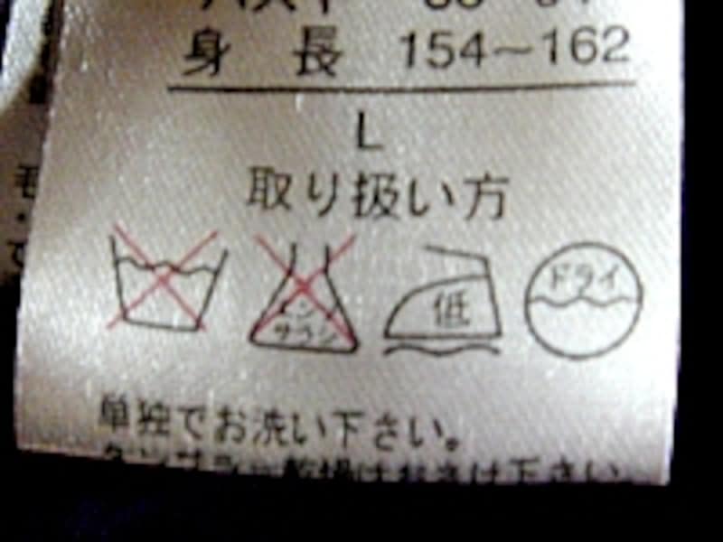 | ホームクリーニングできない例。水洗いマーク(一番左)に「×」がついているものはクリーニング店へ。 |