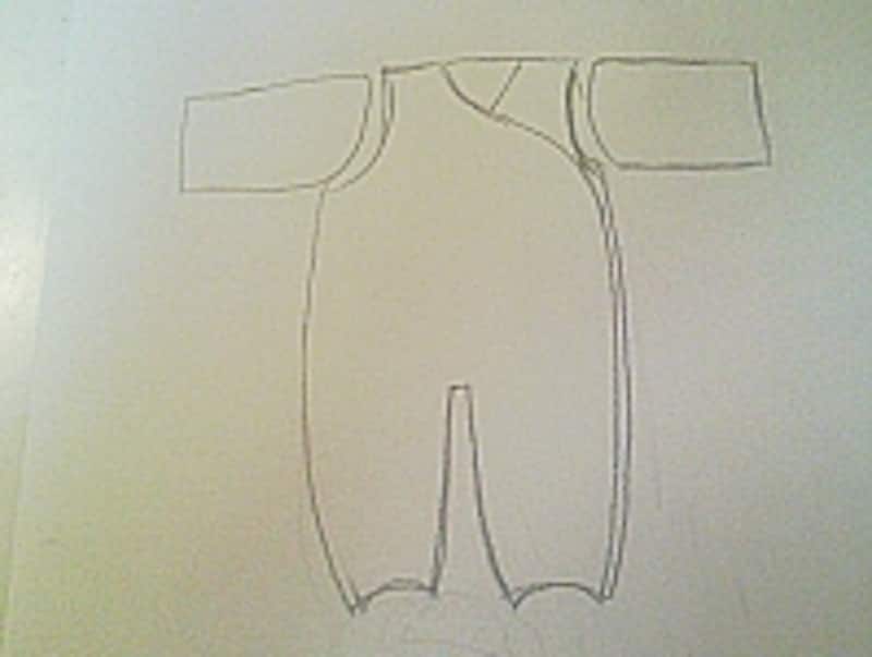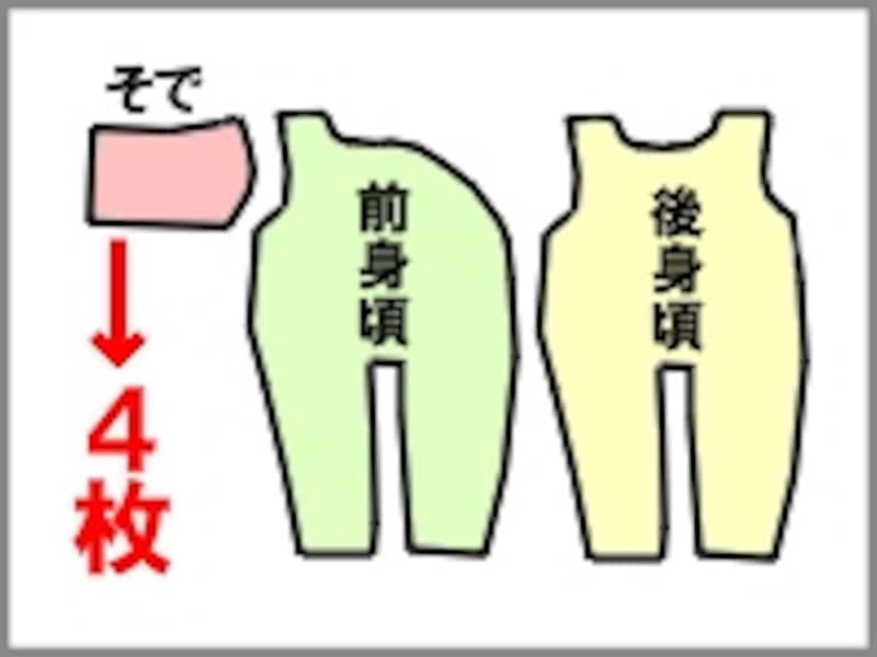前身ごろ、後ろ身ごろを、元の服のデザイン・縫い方を参考にしながら縫いつけ、ソデ2枚を縫ってから、前身ごろ・後ろ身ごろに縫いつけます。