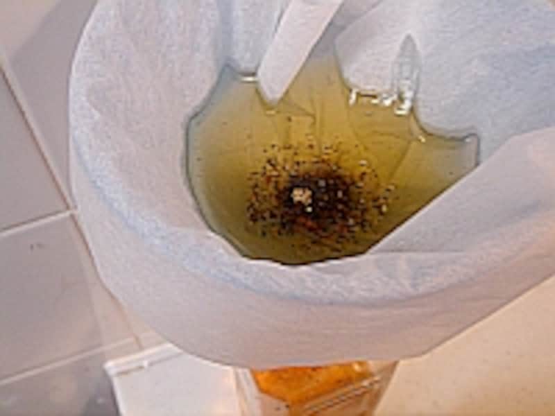使用済み天ぷら油も、キレイに濾してリサイクルに出せば、燃料として再利用できます。(参照:「この春、渋谷を廃天ぷら油のバスが走る!?」(from,All About[ボランティア]ガイド記事))