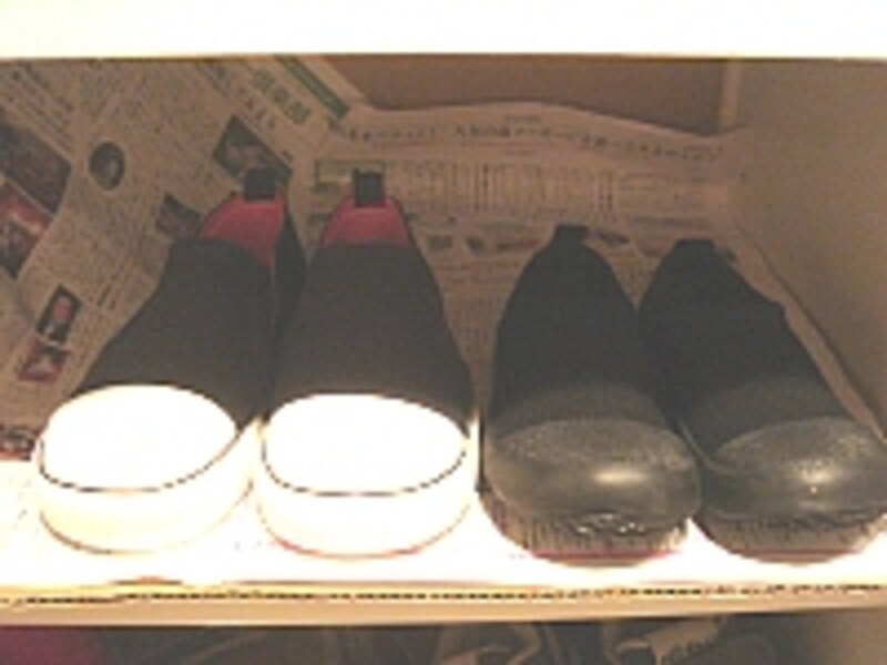 実はこの新聞紙という素材は湿気と臭いを取るには最適な素材なんです!新聞紙は、身近にある他の用紙と違って、表面にコーティングがされていないそうで、だから水分や油分、臭いなどを強力に吸収してくれるんです。それに、靴の汚れによる下駄箱の汚れも軽減出来ますよね。