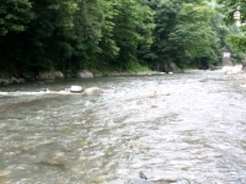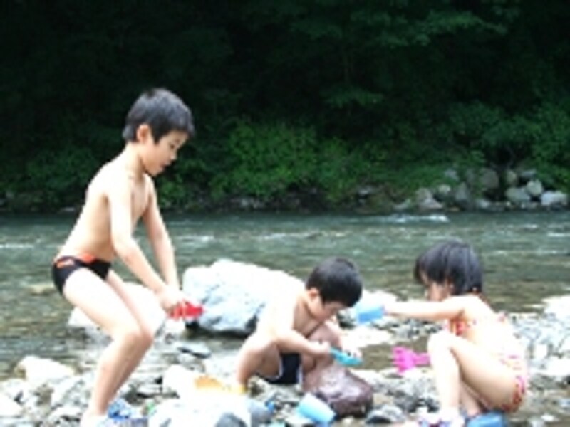 多摩川はとても流れが速く、夏でも水温が低いため、事故などに気をつけたいところ。ガイド宅はまず旅館のご主人に聞いて、安全に遊べるポイントで遊びました。浅瀬から少しでも奥に進むと、かなり深いところや、大人のヒザくらいの深さでも、大人でも流されそうになるほどの急流でもありますので、注意してください。![]() |