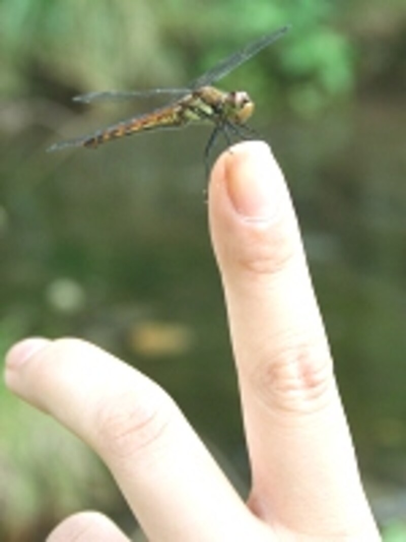 | 人を怖がらないトンボたち。枯れ草などにとまっているときに、目の前にそっと指を差し出すととまってくれることがありますよ。 |