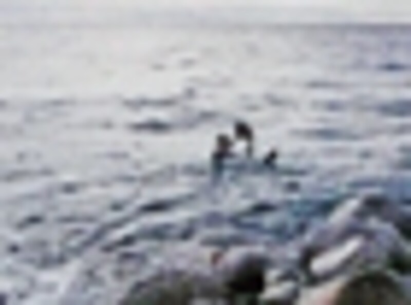ちょっと深場にある岩に歩を進めて腰まで水につかり、恐る恐るしゃがんでみると……