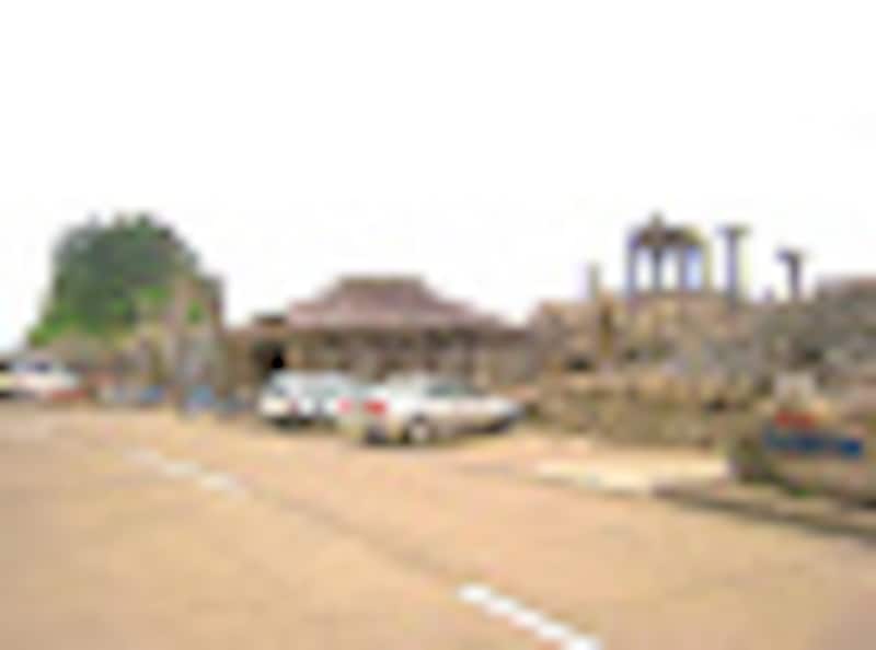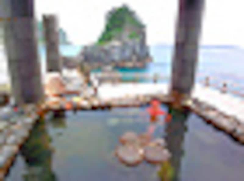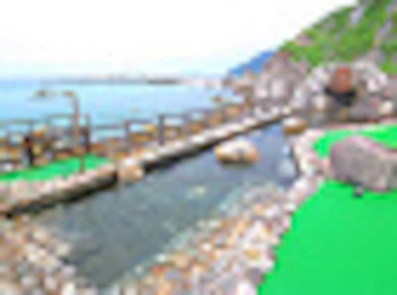 迫力ある岩山とギリシャ神殿風の東屋が目印