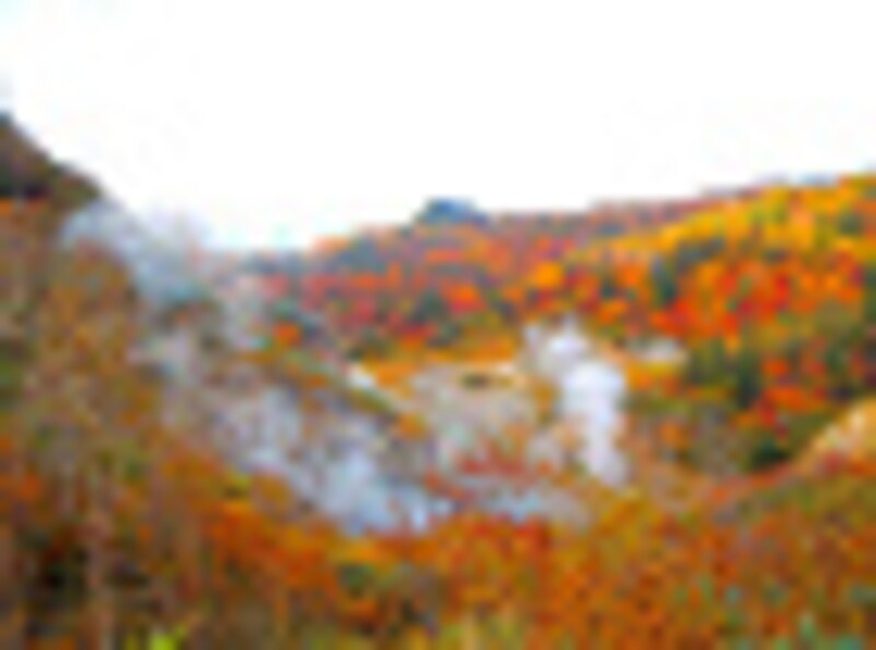しかも、紅葉に温泉の噴気が実にマッチしていて、印象的な景観です。流石に、展望台が建設されるだけのことはあると関心してしまいます。