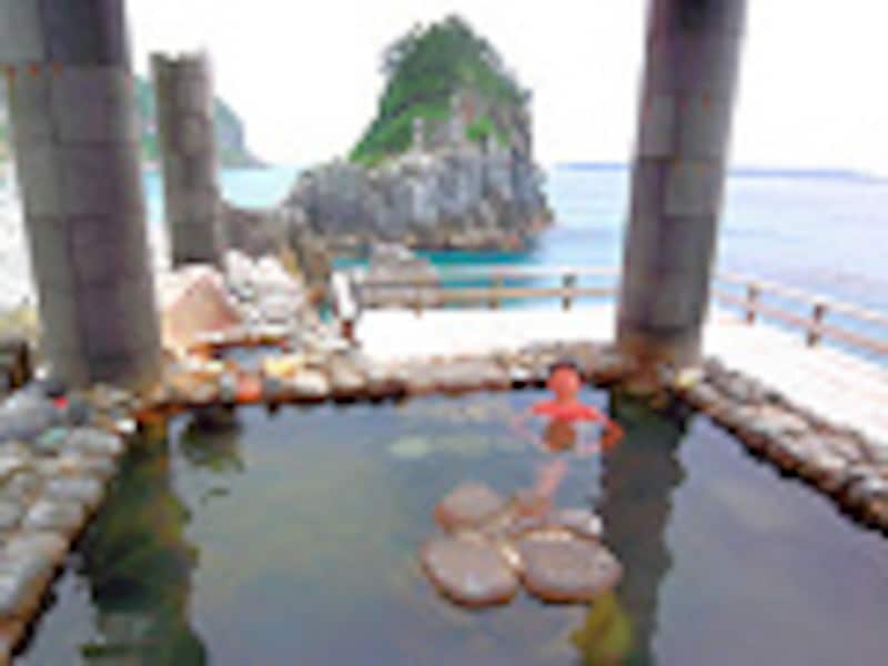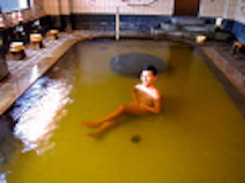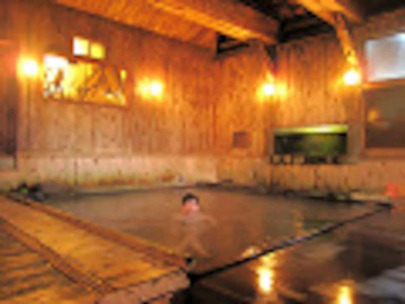 遊歩道にランプが点在しているとはいえ、その間隔も広くかなり暗いので、今回は念のため宿に戻り、館内の湯を堪能することにしました。館内の浴場も、夜は雰囲気満点です。