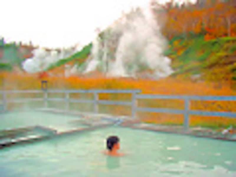 特に館内の露天風呂は、夜にはランプが灯され、山の秘湯らしい風情に溢れていて、感激しました。遠くに噴気地帯の露天群のランプがきらめいているのが見えて印象的。いつか宿泊して懐中電灯持参で、夜の噴気の中の露天風呂巡りを堪能してみたいものです。