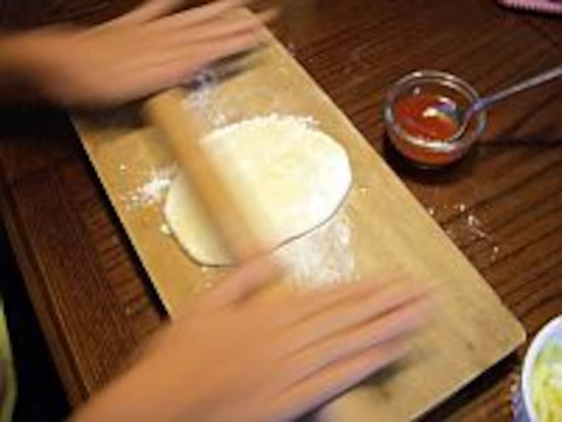 6. Divide the dough into 4 even portions and roll into thin circles on a floured cutting board.