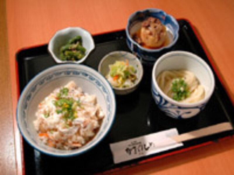 | 小うどんに小鉢が3品付く「鯛めし定食」はランチタイム限定メニュー |