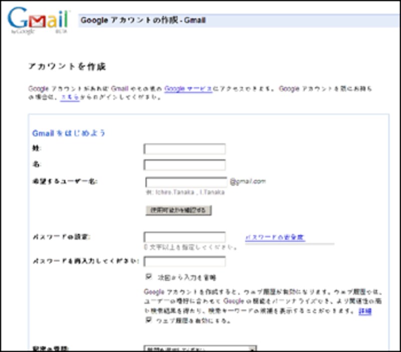 アカウントの作成フォームが表示されますので、画面の指示に従って、情報を入力してください。すべての情報を正しく入力すると、即座にメールアドレスの作成が完了します。