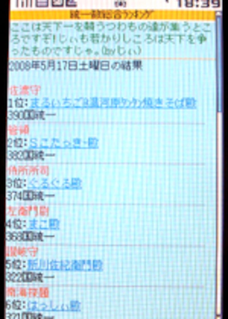 「国盗り」した国の数でランキングされ、毎日更新されます。ライバルたちに負けないように、どんどん「国盗り」をして、天下統一を目指しましょう!