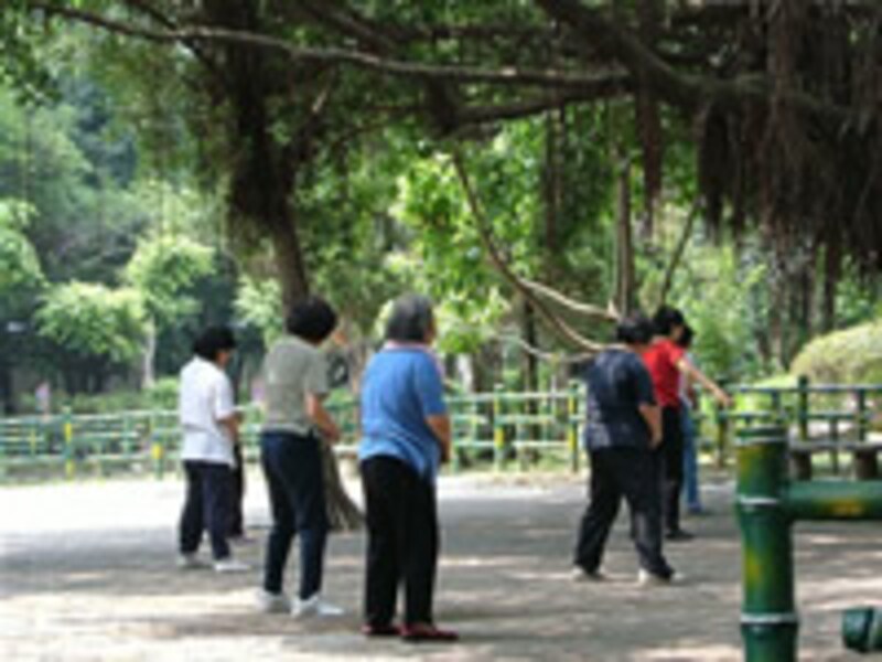 | 街中では太極拳をする人の姿も。ちゃっかり(?!)参加してから朝ごはんなんてのもよいかも |