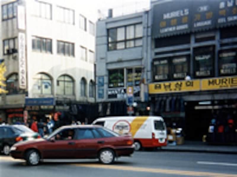 | 英語表記やミリタリーグッズの店も多く、趣を異にする梨泰院の街並み |