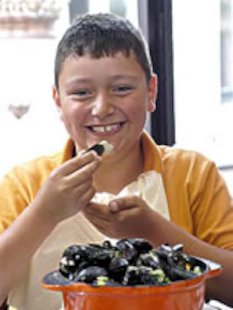 | 山盛りのムール貝はフォークやナイフを使って食べるのはちょっと面倒……(C)Chez Léon |