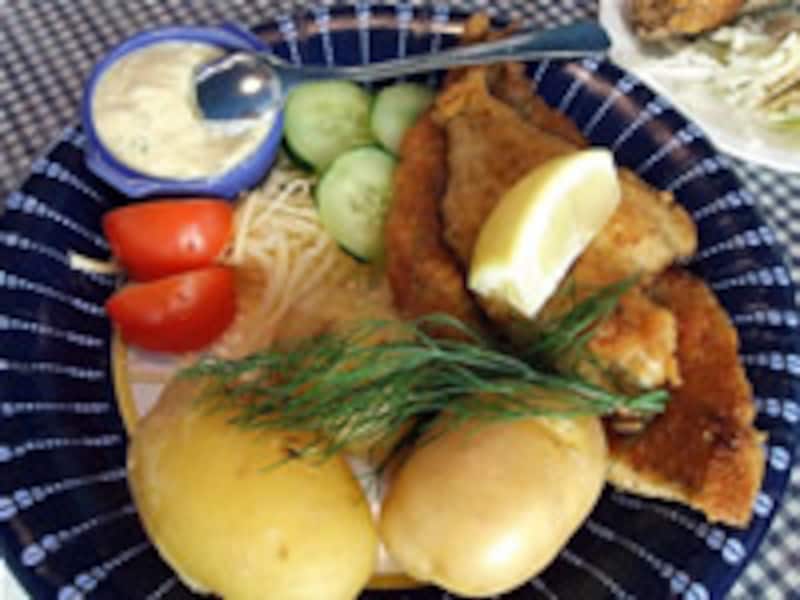 | セットメニューのポークカツレツはシンプルな家庭料理風でボリューム満点 |
