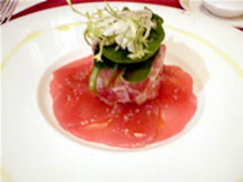 | カルパッチョ(2,050CFP/約2,500円)。素材がおいしいのでシンプルな味付けがひきたつ |