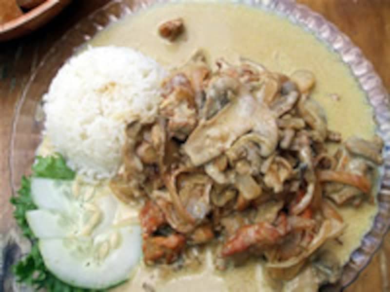 | チキンカレーはココナッツ風味でどこかアジアを感じる味(1,800CFP/約2,200円) |
