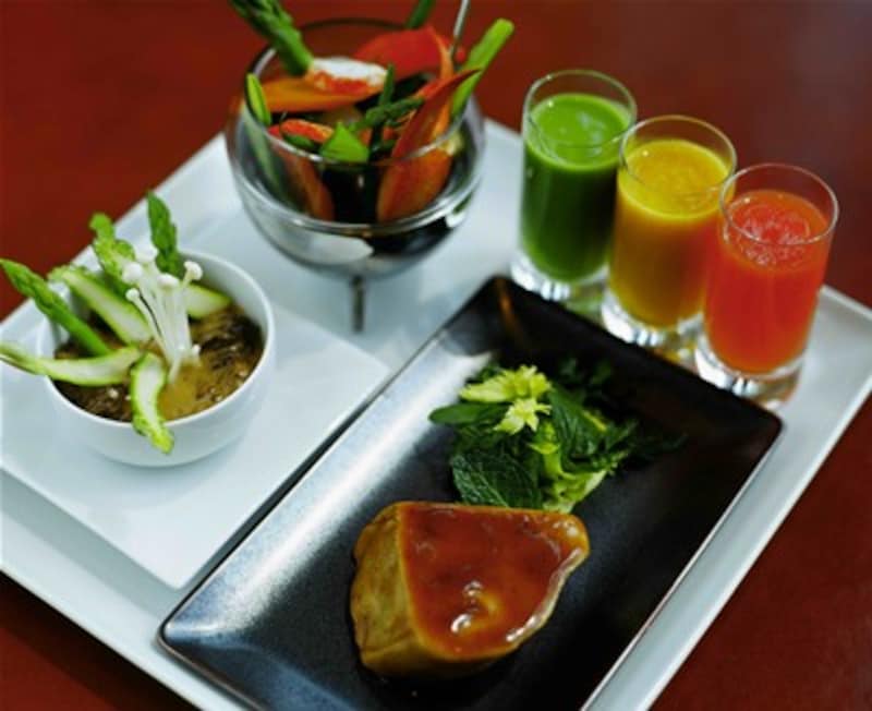 | 色鮮やかなスターター。食器類はフランスのChiristofle(フランス)を使用 |