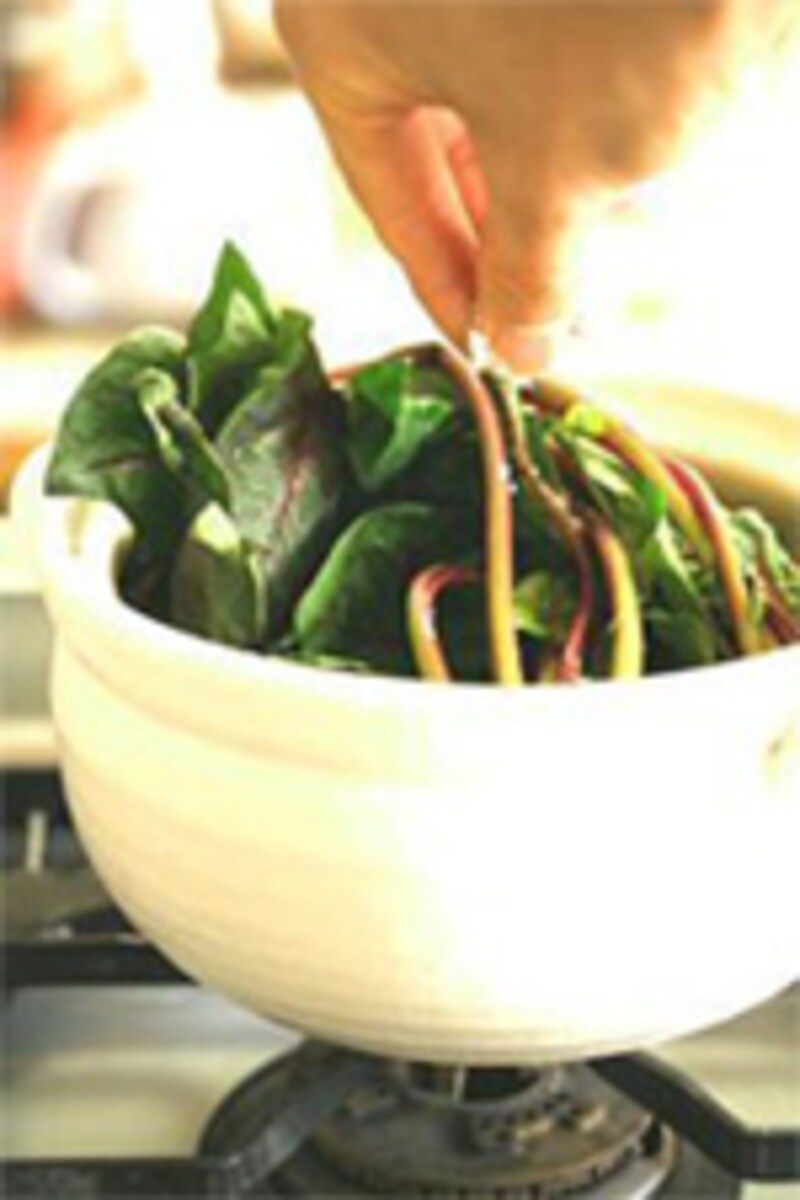 | 色鮮やかしかもうま味たっぷり、ほうれん草の塩蒸し焼き |