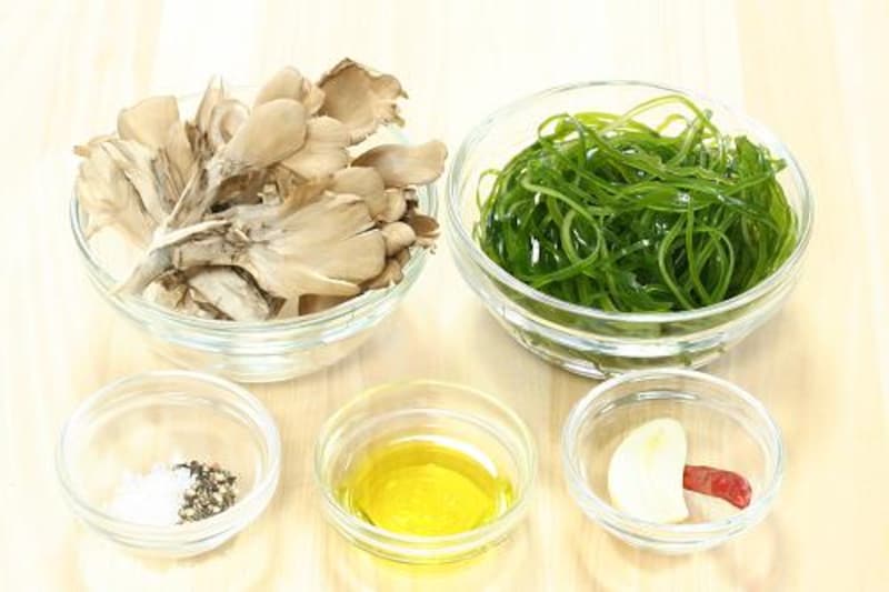 | 切り昆布と舞茸以外はパスタのペペロンチーノと同じ材料 |
