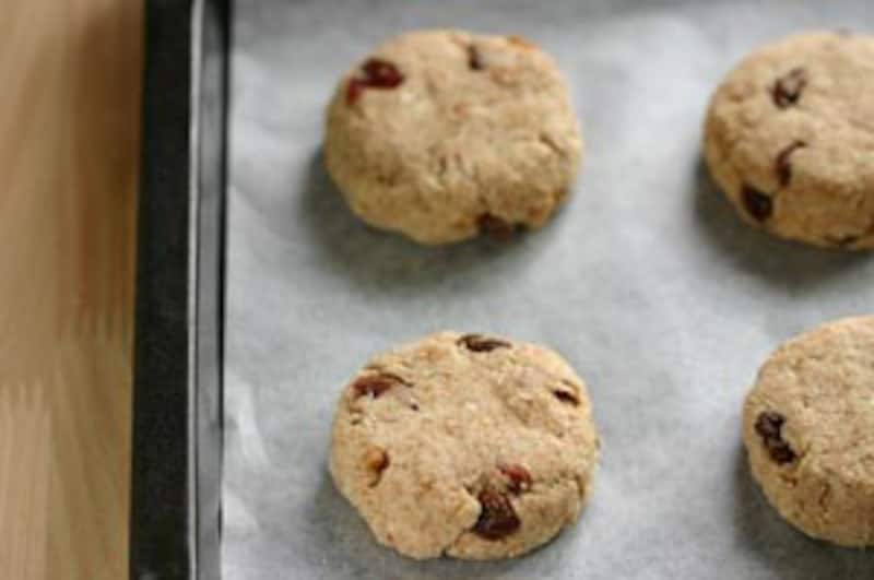全粒粉やドライフルーツを使っているので素朴でナチュラルなおいしさです。砂糖とバターも少なめなのに、とってもおいしいから、嬉しくなります。一緒にお茶などの水分をしっかり摂ると、お腹の中で膨れてくるので、とっても満足感がありますよ!