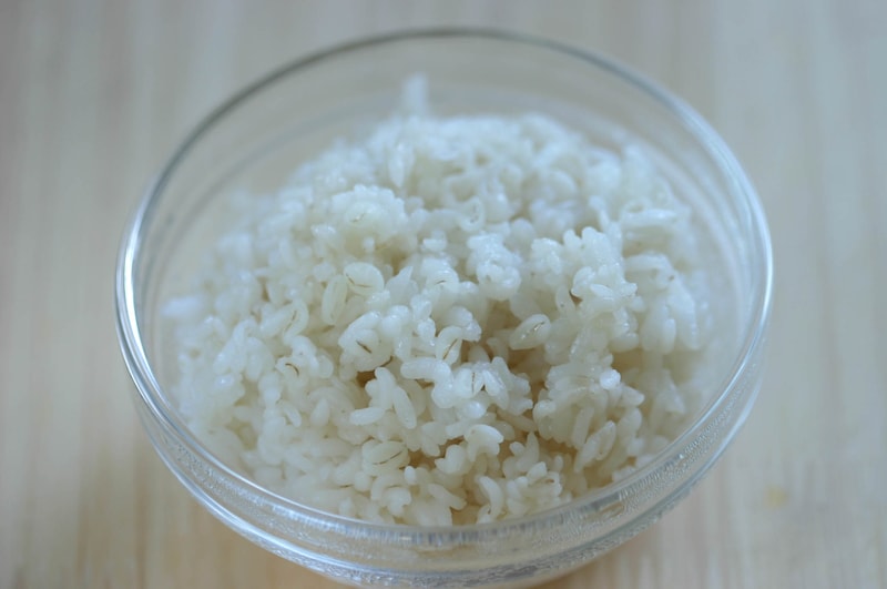 ・粉寒天をお米に加えて炊く