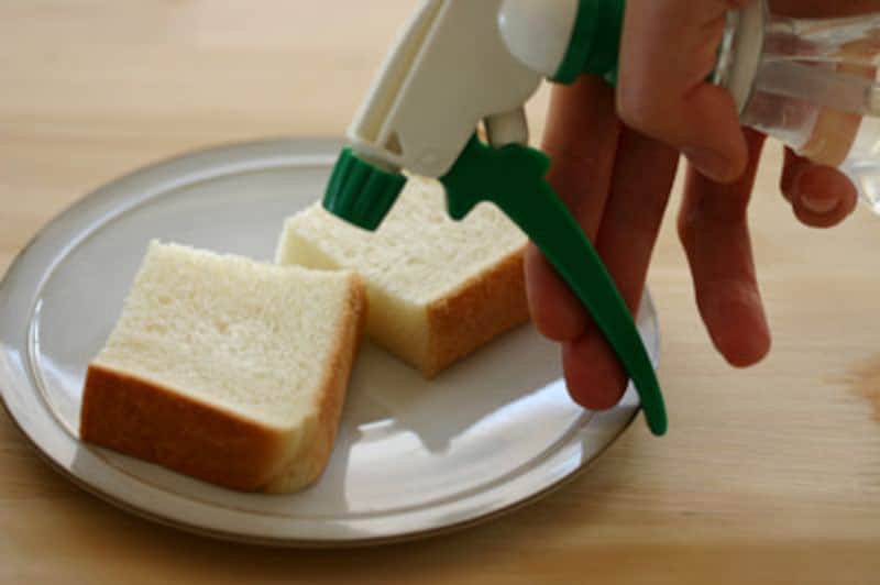 *食パンは霧吹きをすると、ふっくら焼きあがります。