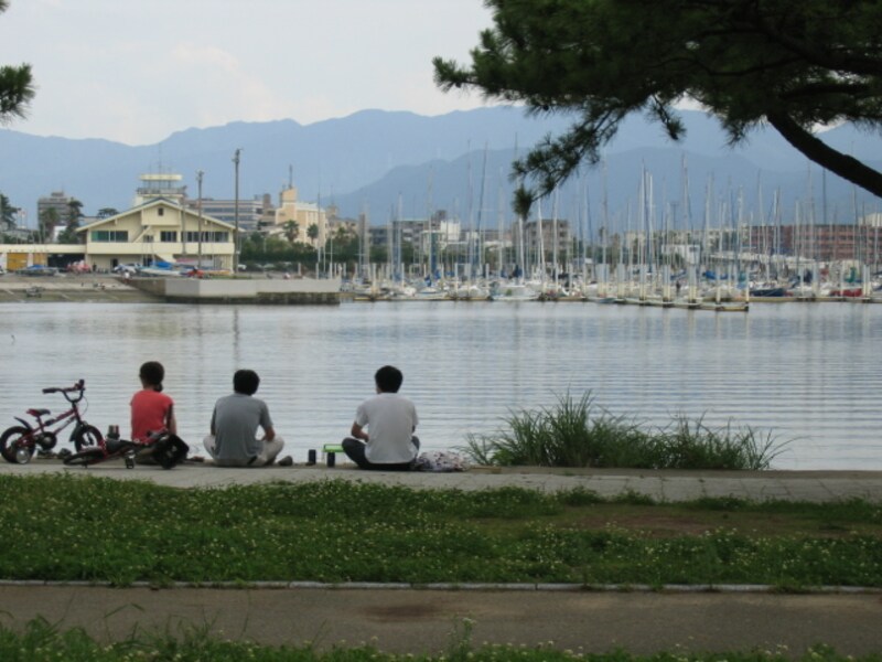 | 小戸公園、ここからヨットが出航。休日には数多くの白い帆が博多湾を彩ります。 |