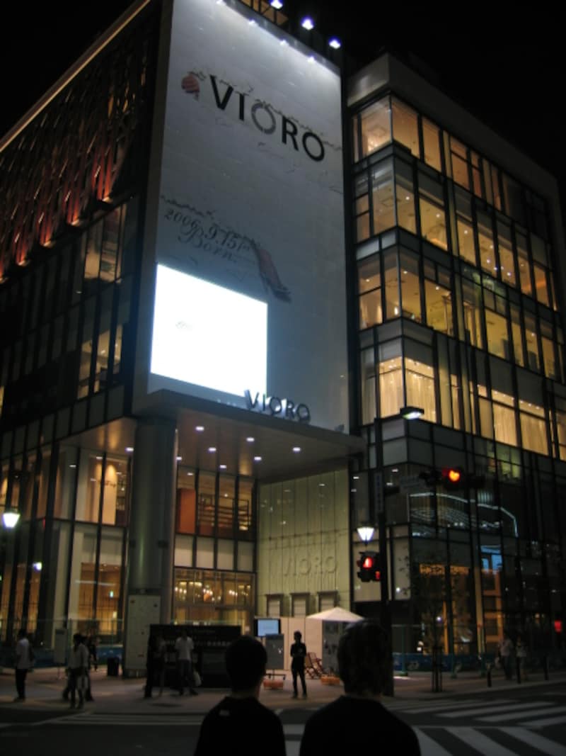 | VIOROの夜の外観。夜の帳に浮き上がるようなライトアップが印象的。 |
