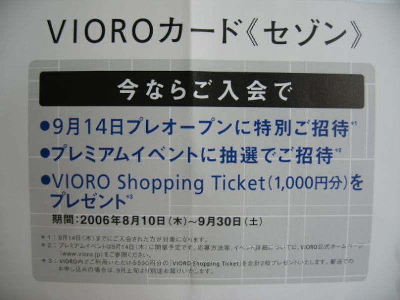 | VIOROカードの募集要項。様々な特典があるようです。 |