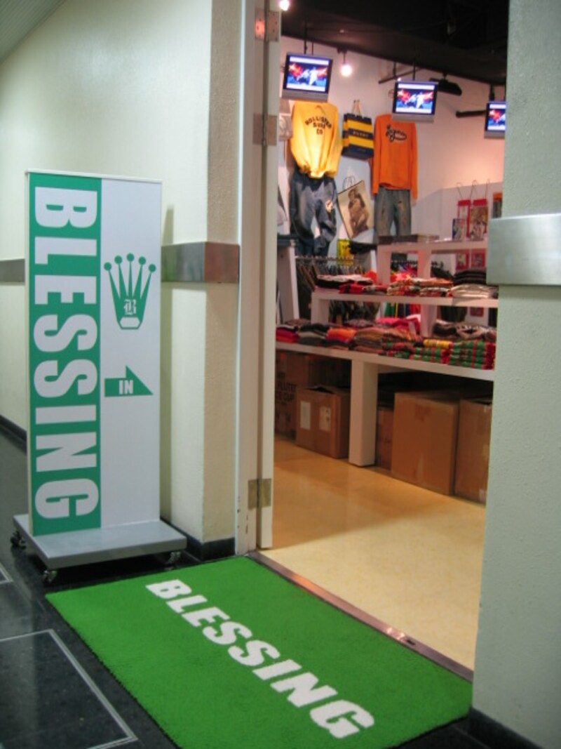 天神2丁目のパシフィーク天神横のビル1Fにある、BLESSING。ここの店長、吉川さんは日本にHIP HOPファッションを根付かせた知る人ぞ知る、ファッション界ではカリスマ店長。店内には所狭しと流行の先端をいく洋服やアクセサリーなどが陳列されています。HIP HOPと聞くとダボダボの装いと連想しますが、ここBLESSINGのアイテムはダボダボなイメージの洋服というものはほとんどなく、セレクトされた最新ファッションや幅広いファッションアイテムを見ているだけでも楽しい空間のはずです。