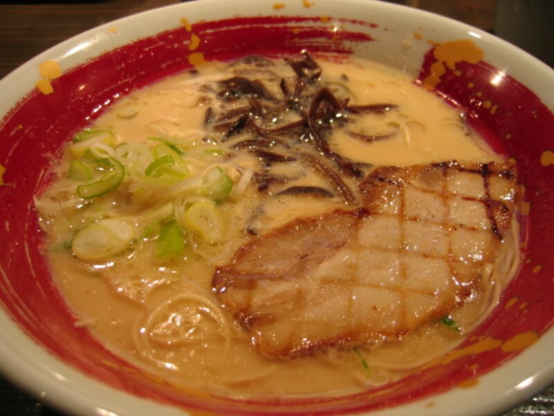 スープは茶色のとんこつベースだが、鳥や牛も使われているため、見た目よりはあっさり、スッキリしていて、スッと飲めるスープ。後味は甘みを感じられる仕上がりとなっている。麺は細めで女性でもペロッと食べれるそんな一杯です。
