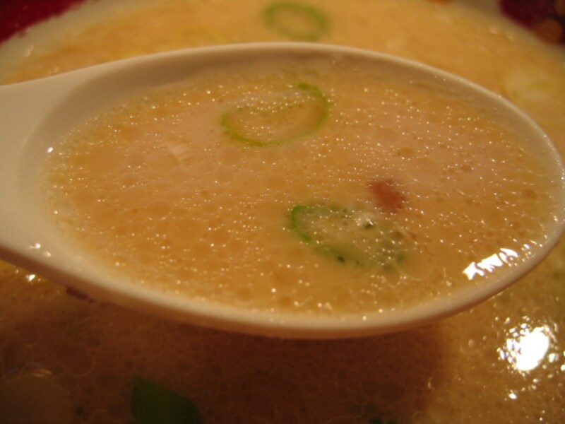 | 「ららららーめん」のスープ。写真では分りづらいですが真っ白なスープ。 |