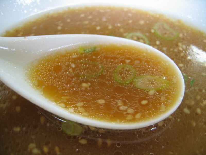 | さっぱりスッキリ飲めるスープは茶色。後味は甘みを感じられる味。 |