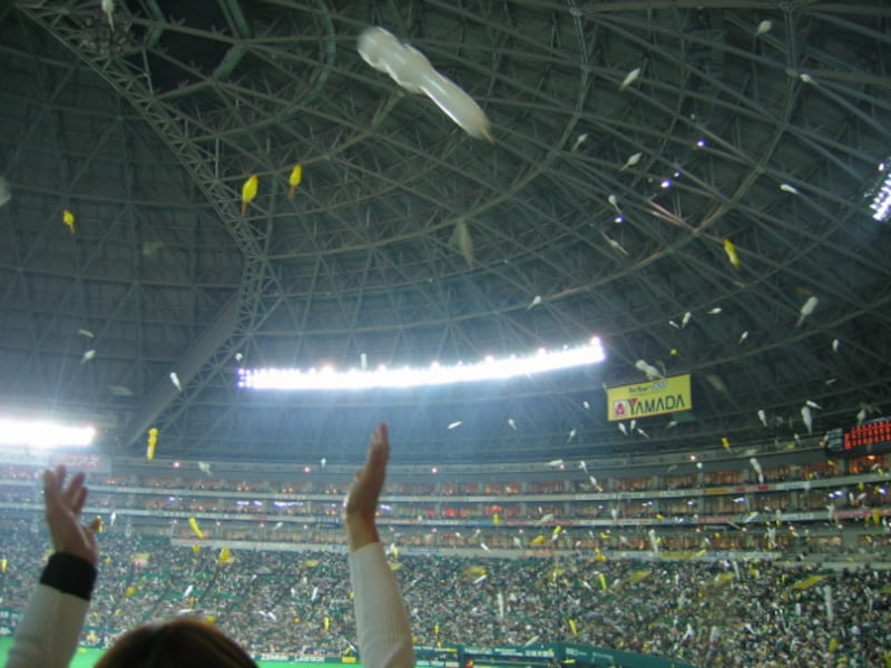 ドームでの楽しみ。風船飛ばしに勝利の歌、花火にそしてルーフショー