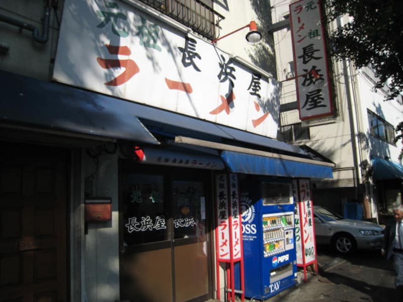 | 元祖長浜屋の本店。本店は昔ながらのオーダーが店内に響いています。「カタいっぱ~い」って。 |